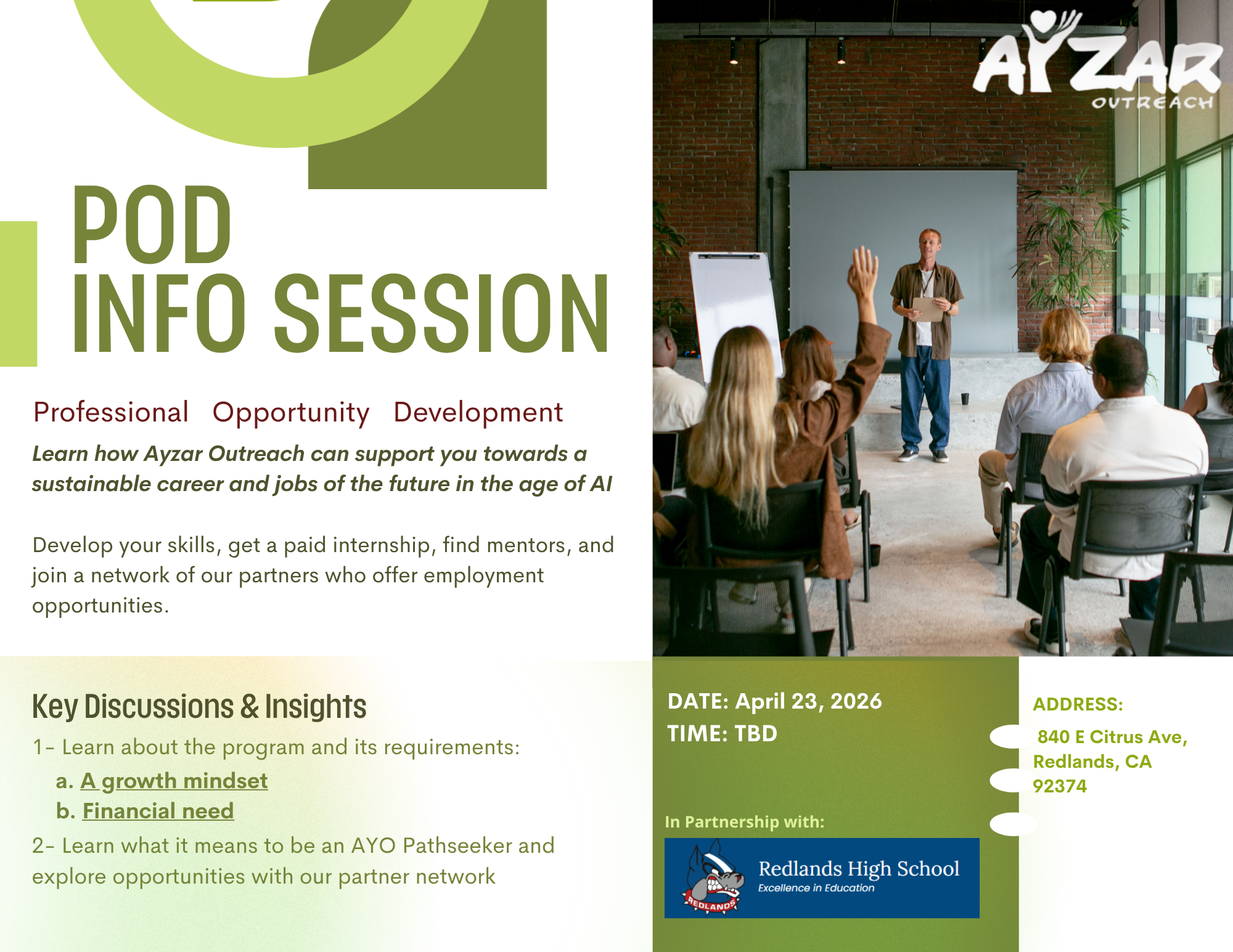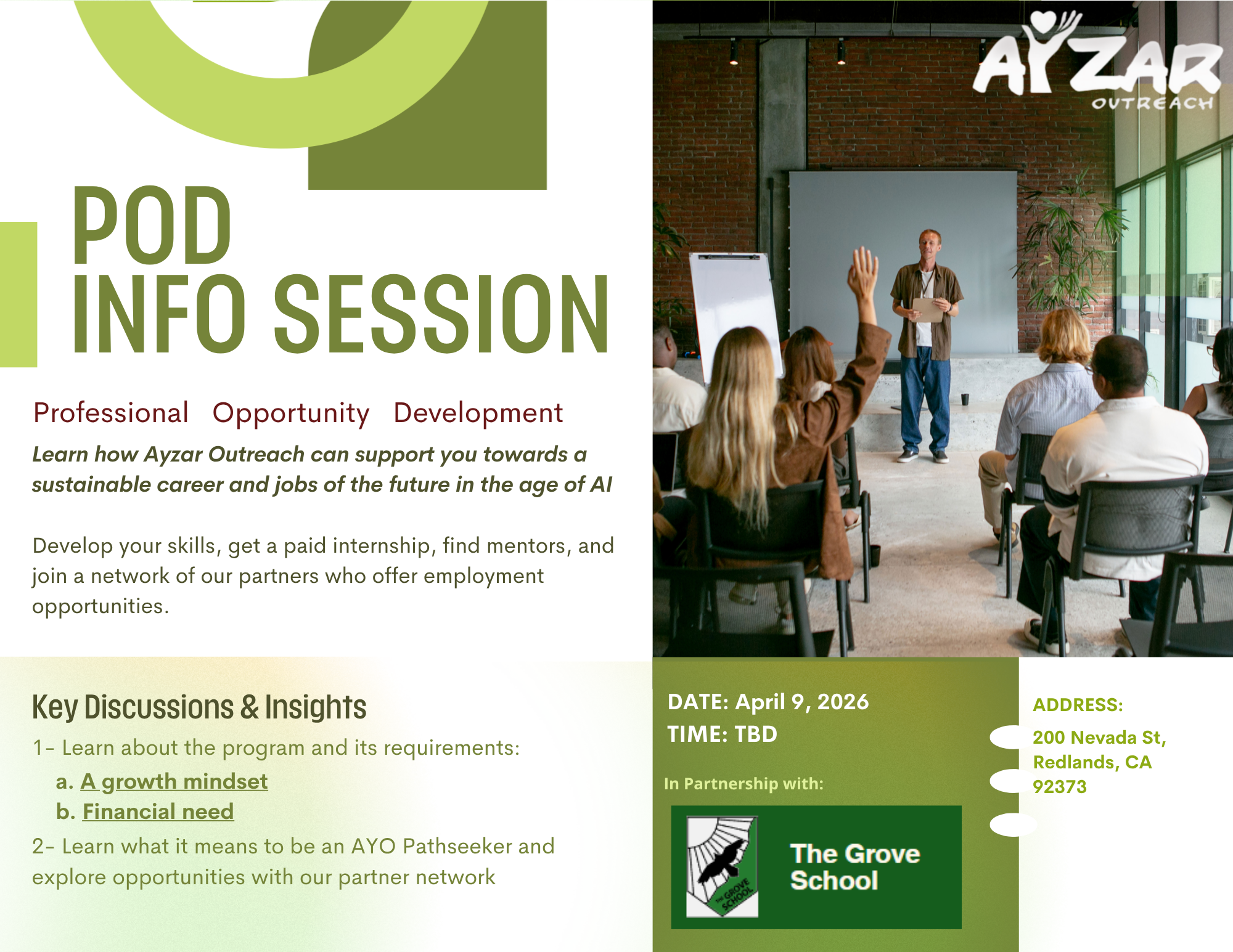 POD Info Session Professional Opportunity Development Join AyZar Outreach for an in-person POD (Professional Opportunity Development) Info Session, where you’ll learn how we support individuals on their path toward sustainable […]